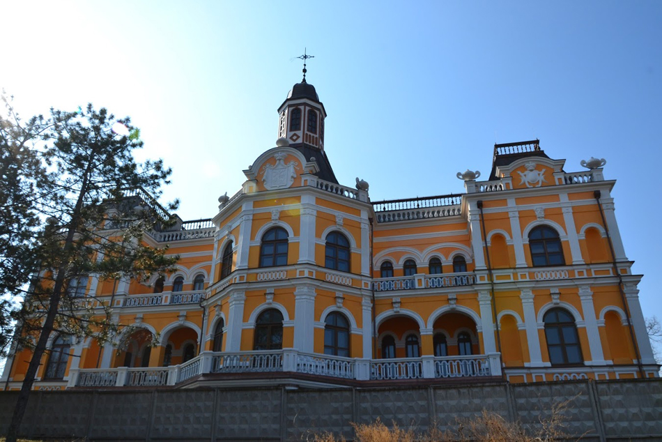 Комплекс состоит из Дворца, Охотничьего замка, Белой столовой, библиотеки и служебных строений. Весь дворец выполнен в стиле французского классицизма, с широкими оконными проемами и большими лоджиями.