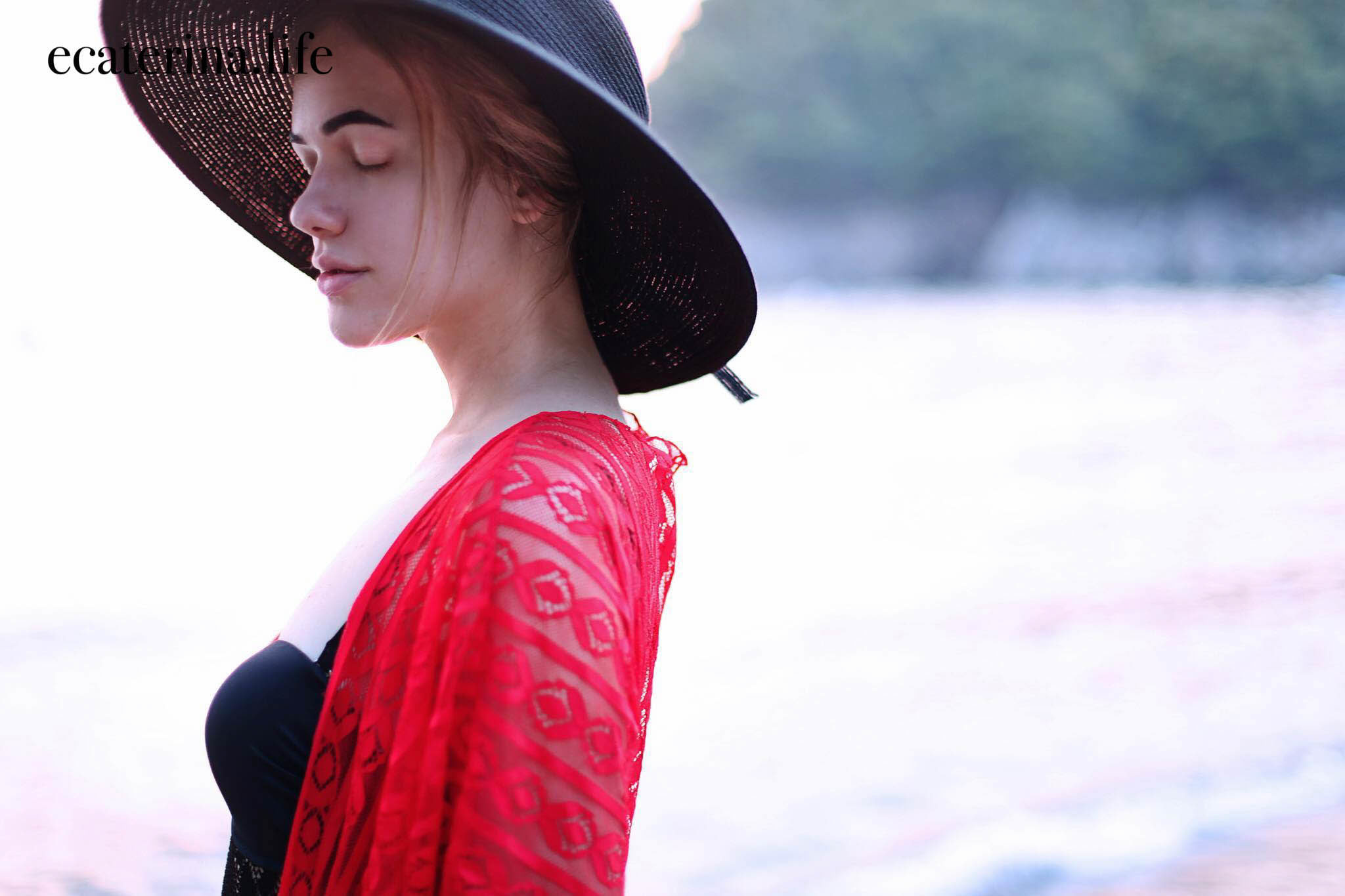 На пляжах жаркого Монтенегро, российский фотограф Катерина Терехова запечатлела Екатерину Карачковскую на фоне заката.