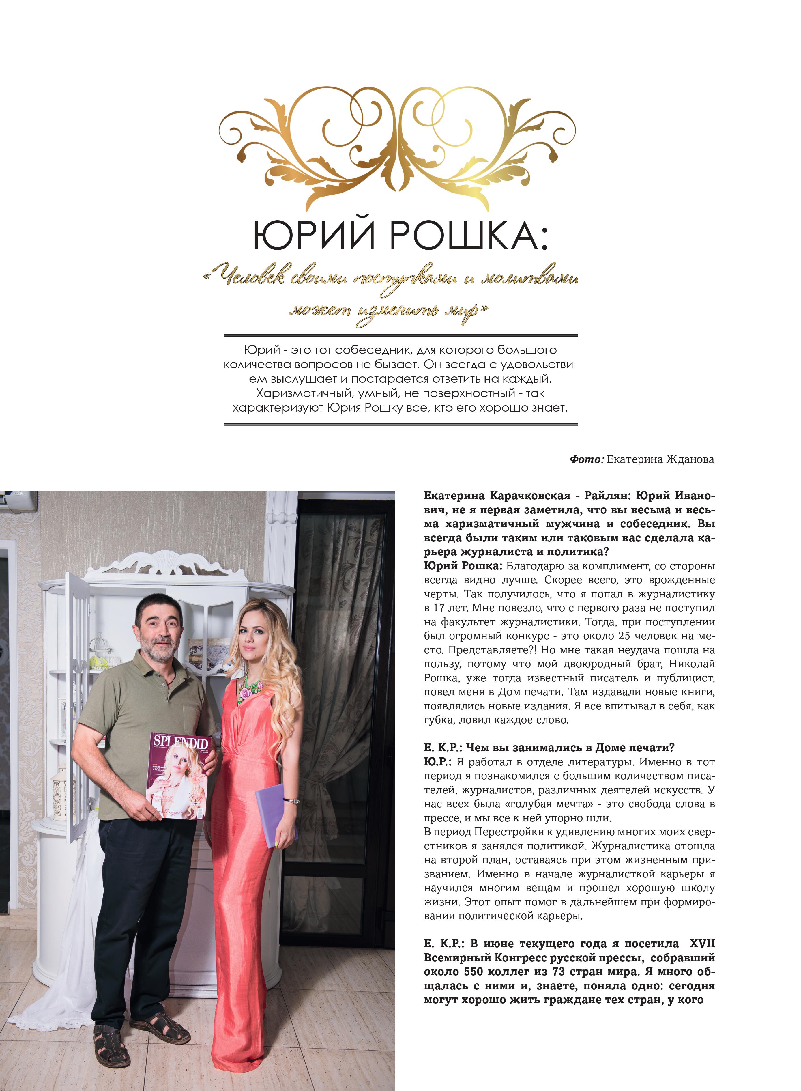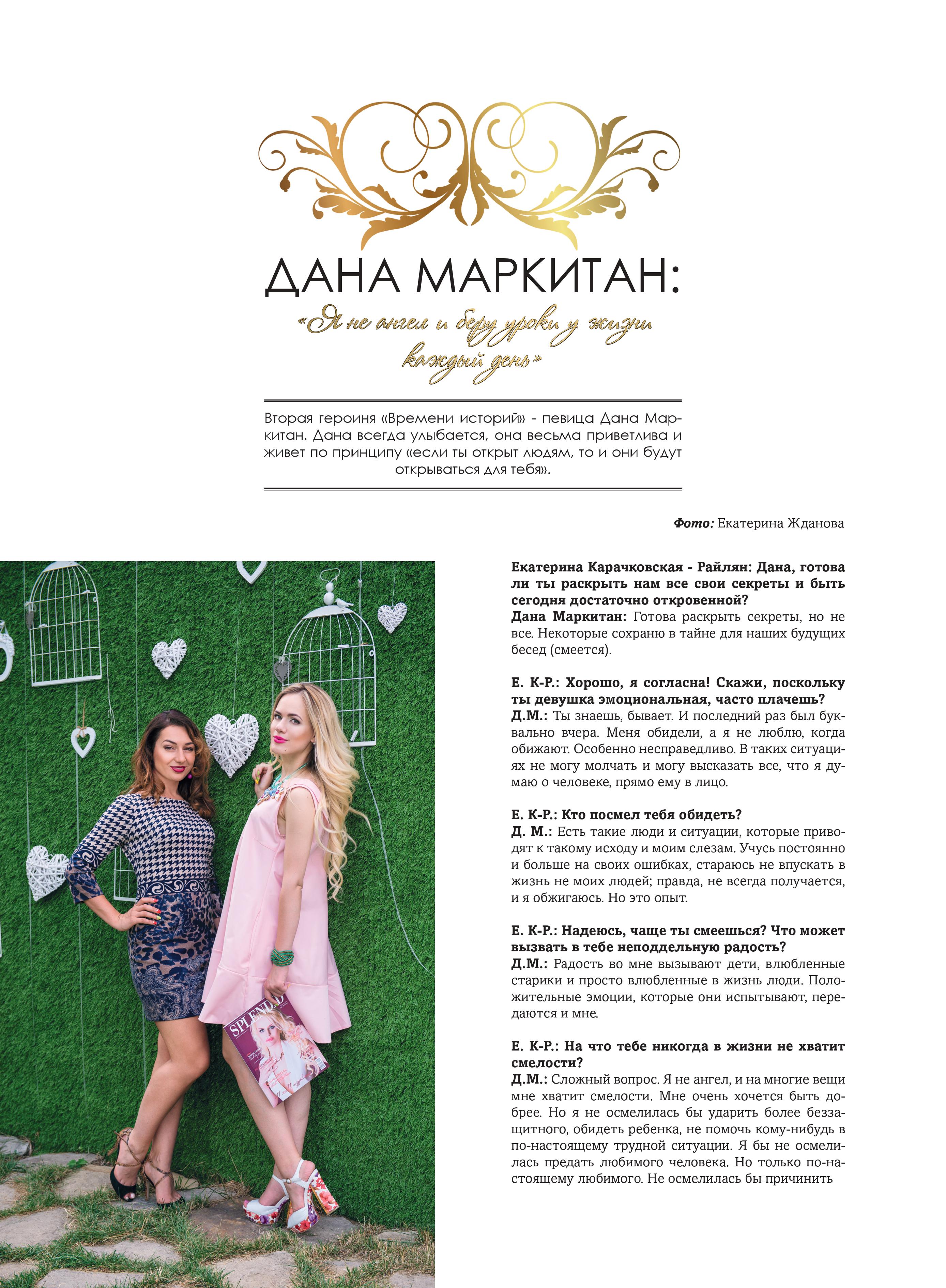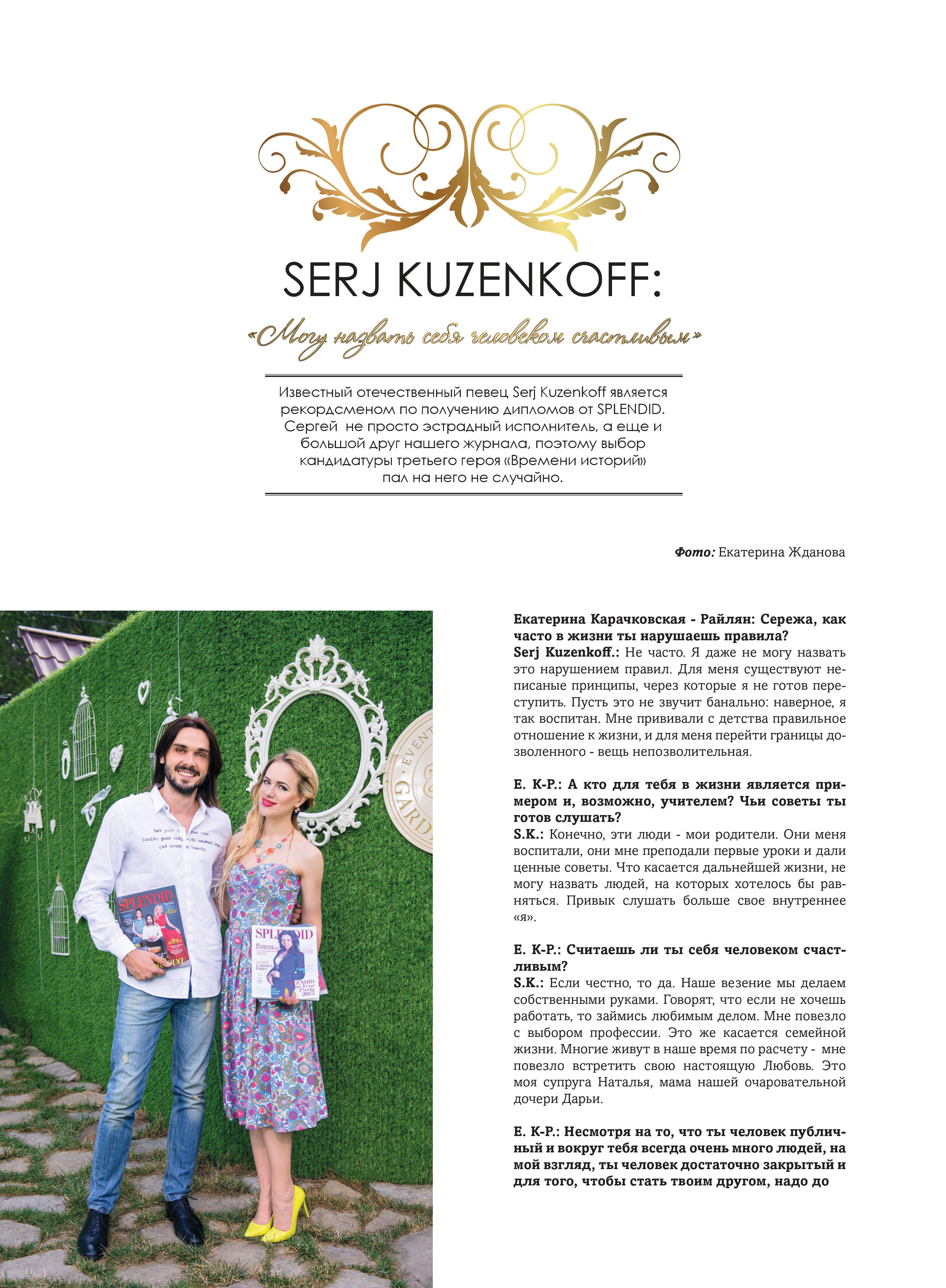 Е. К.Р.: Каждый выпуск включает в себя не только публикации на порталах и канале, о котором я упоминала выше, но и интервью в информационном журнале SPLENDID. Те самые провокационные вопросы и ответы, все самое интересное из интервью мы публикуем только для наших читателей.